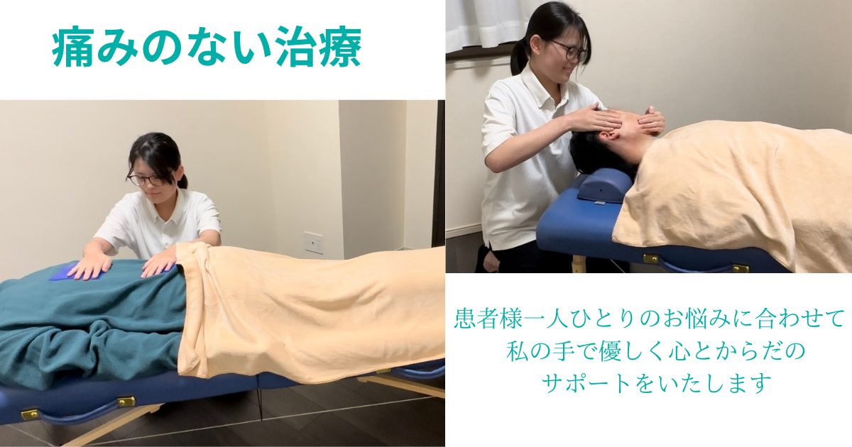 私が患者様のお身体を優しく施術させていただきます。女性だから安心して話せることもあるかと思います。お身体、心配ごとなど何でもご気軽にお話ください!